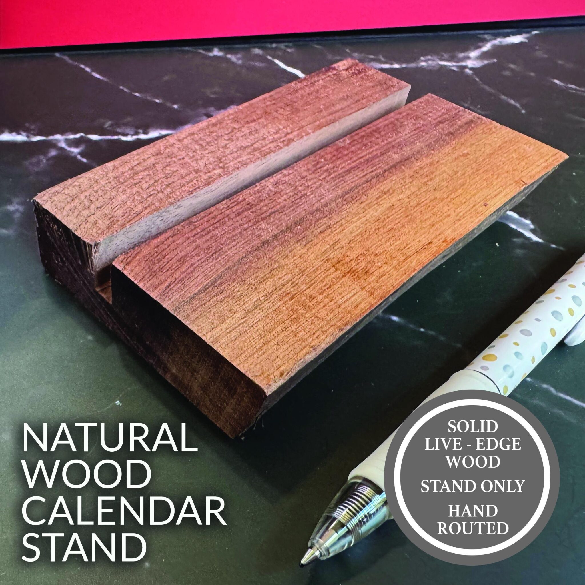Elevate your workspace or home office with this handcrafted solid wood desktop calendar stand, designed to beautifully display a 5x7 monthly calendar card set. Each stand is made from reclaimed end pieces of wood, giving new life to high-quality offcuts that would otherwise go to waste.