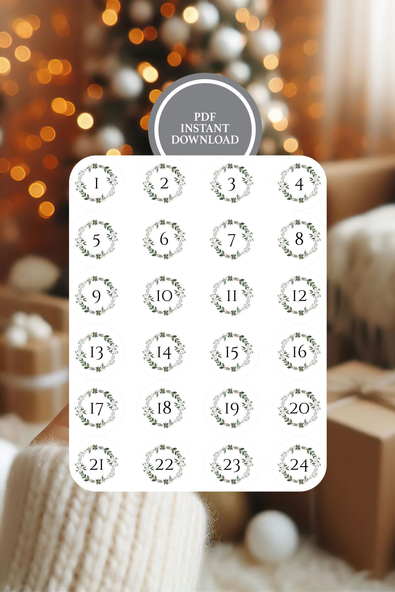 • Includes numbers 1–24 for a complete Advent countdown
