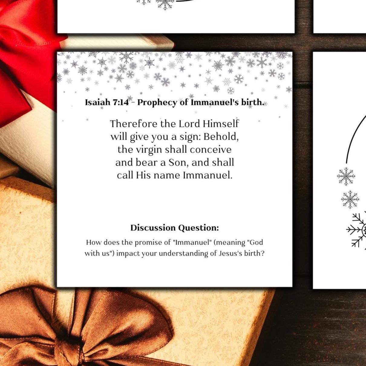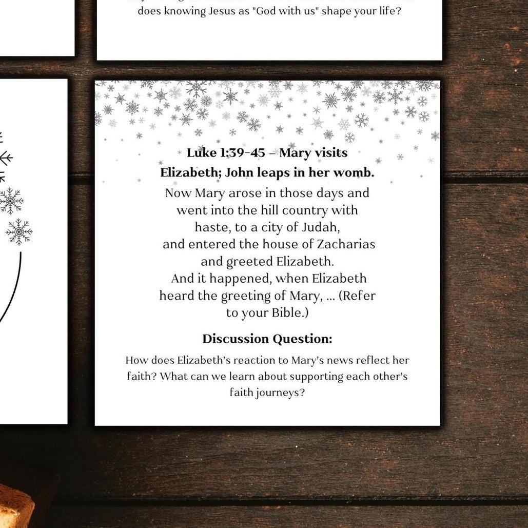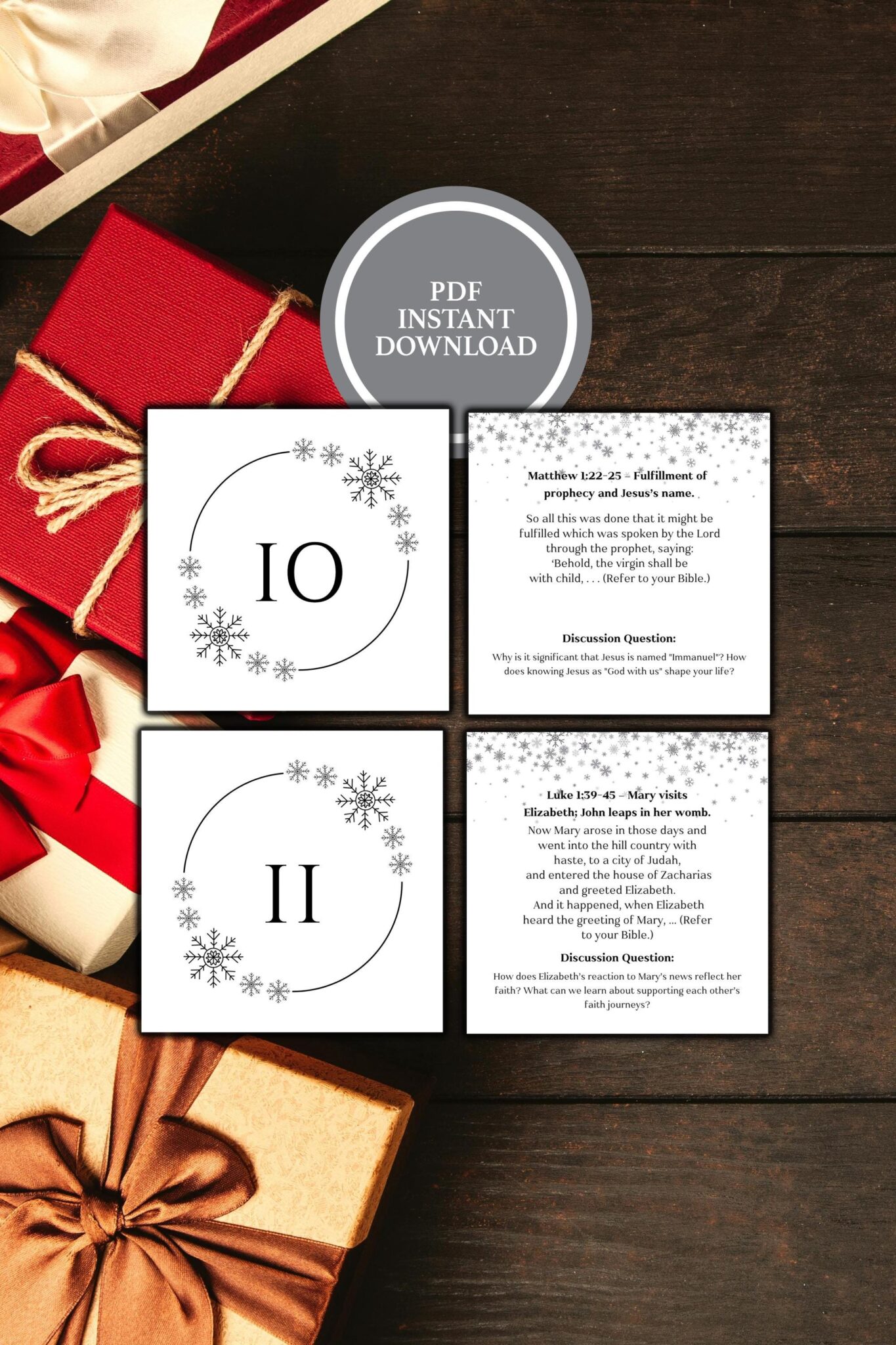 Print your cards at home on cardstock or photo paper. Begin with card #1 on December 1st and continue through Christmas Eve with card #24. Read the verse together, talk about the reflection question, and enjoy growing in faith as a family this Christmas season.