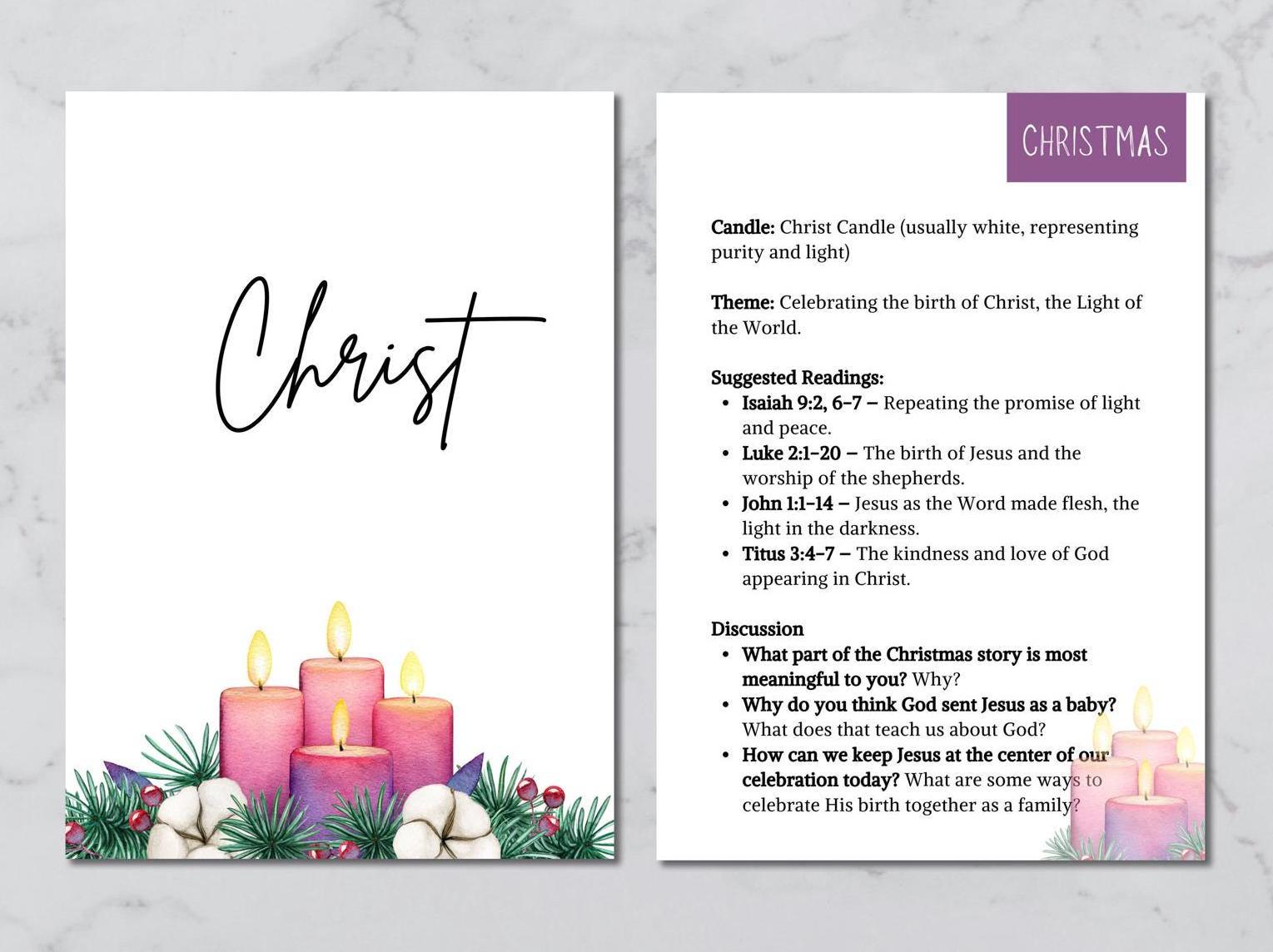 Celebrate Advent as a family with these simple, beautifully designed double-sided 5x7 printable cards! Each week, gather together to focus on a meaningful theme—Hope, Peace, Joy, and Love—as you prepare for Christmas. These cards make it easy to create a family tradition around your Advent wreath or candles, featuring easy-to-understand Bible readings and discussion questions designed especially for kids.