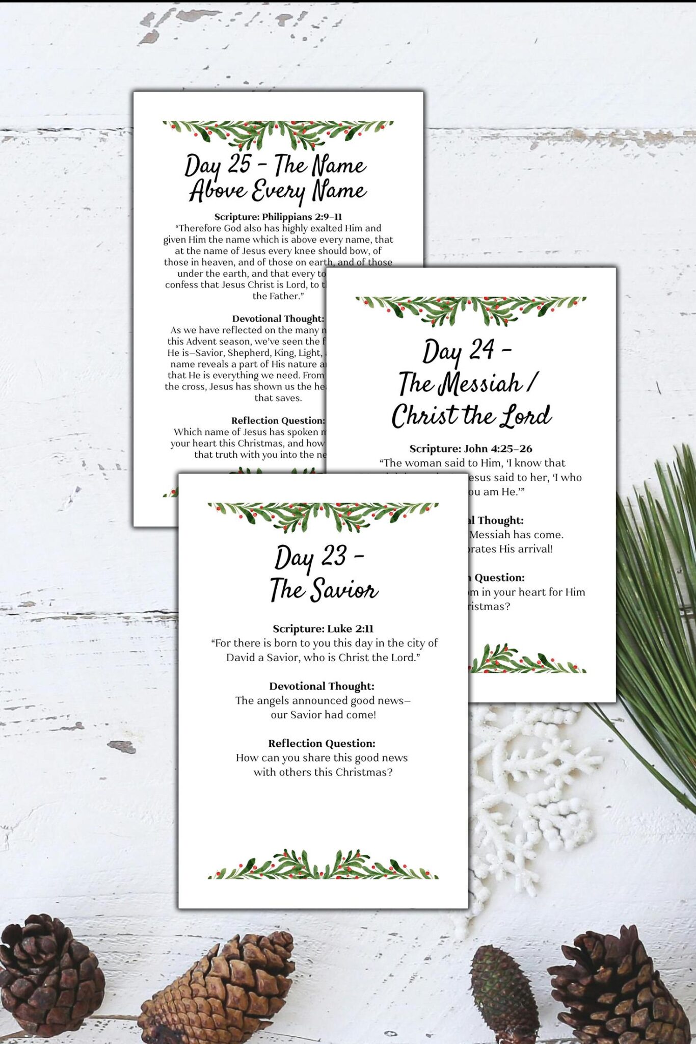 Celebrate the true meaning of Christmas with this beautifully designed 24 Names of Jesus Advent Reading Plan. Each day features one of the names of Jesus, a corresponding Bible verse, a short devotional reflection, and a meaningful question to help you grow closer to Him throughout the Advent season. This simple yet powerful study invites you to slow down, reflect, and prepare your heart for the coming of Christ.