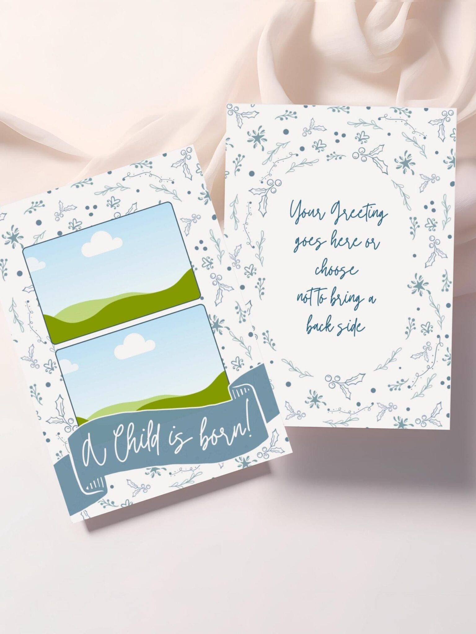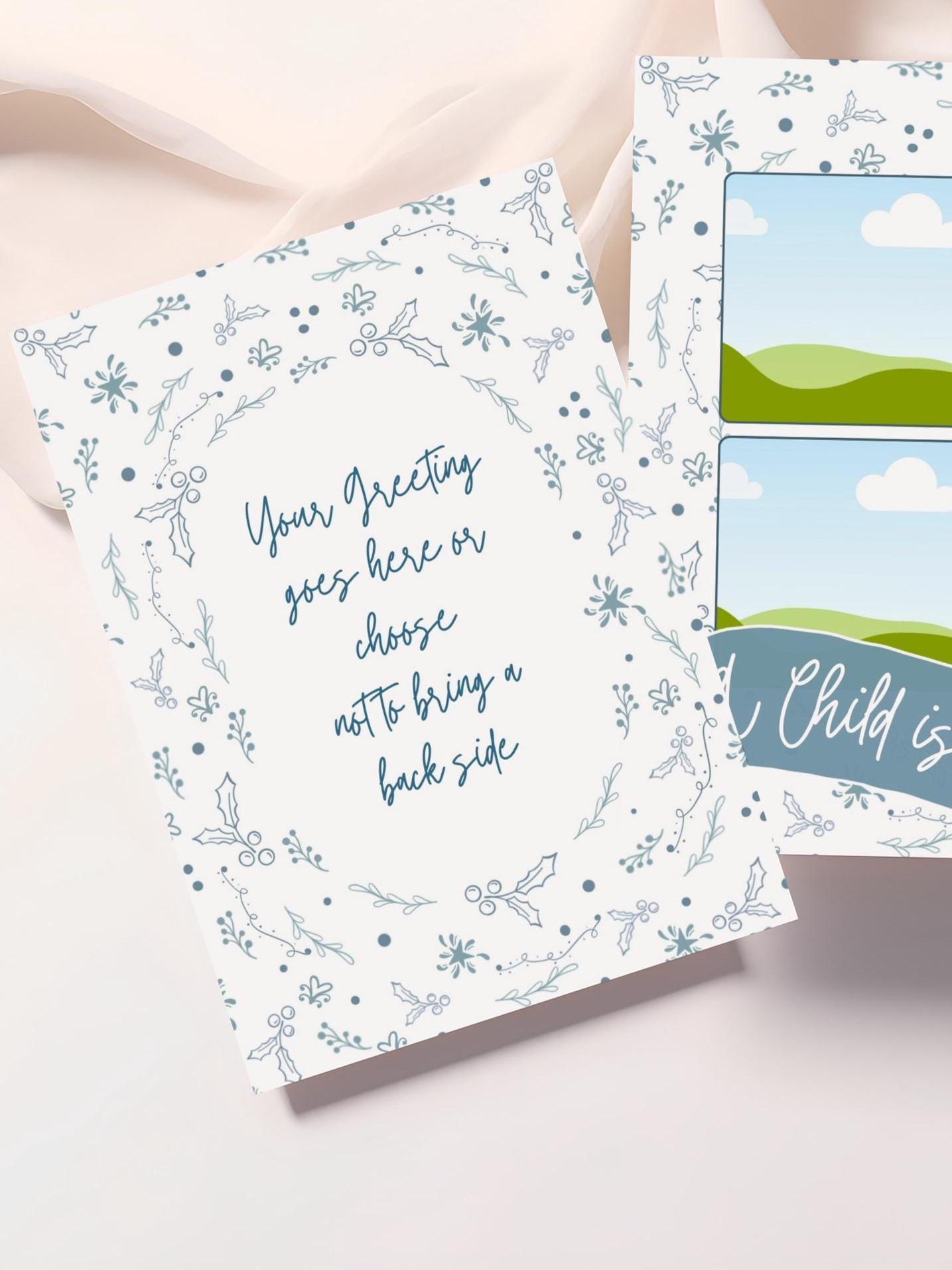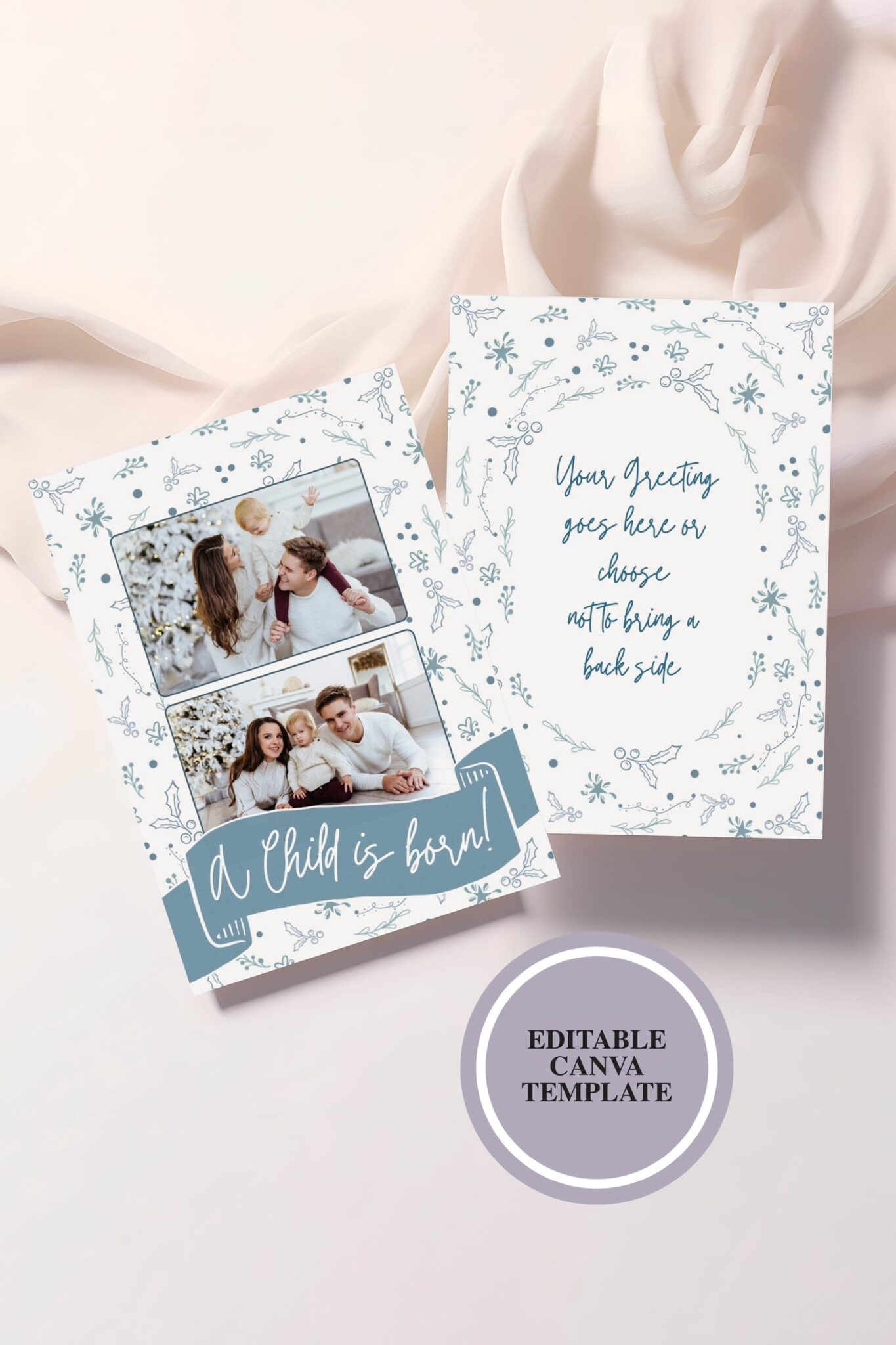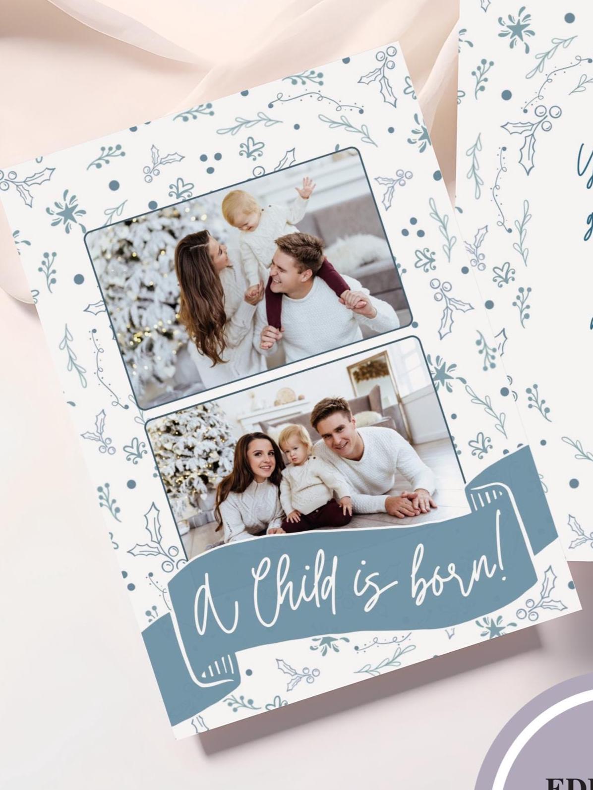 Celebrate the season with this Christian Photo Christmas Card Template, designed as a full photo card with both front and back sides. The main graphic on the front cannot be recolored, but all text and layout elements are fully editable, allowing you to personalize your card beautifully and easily.