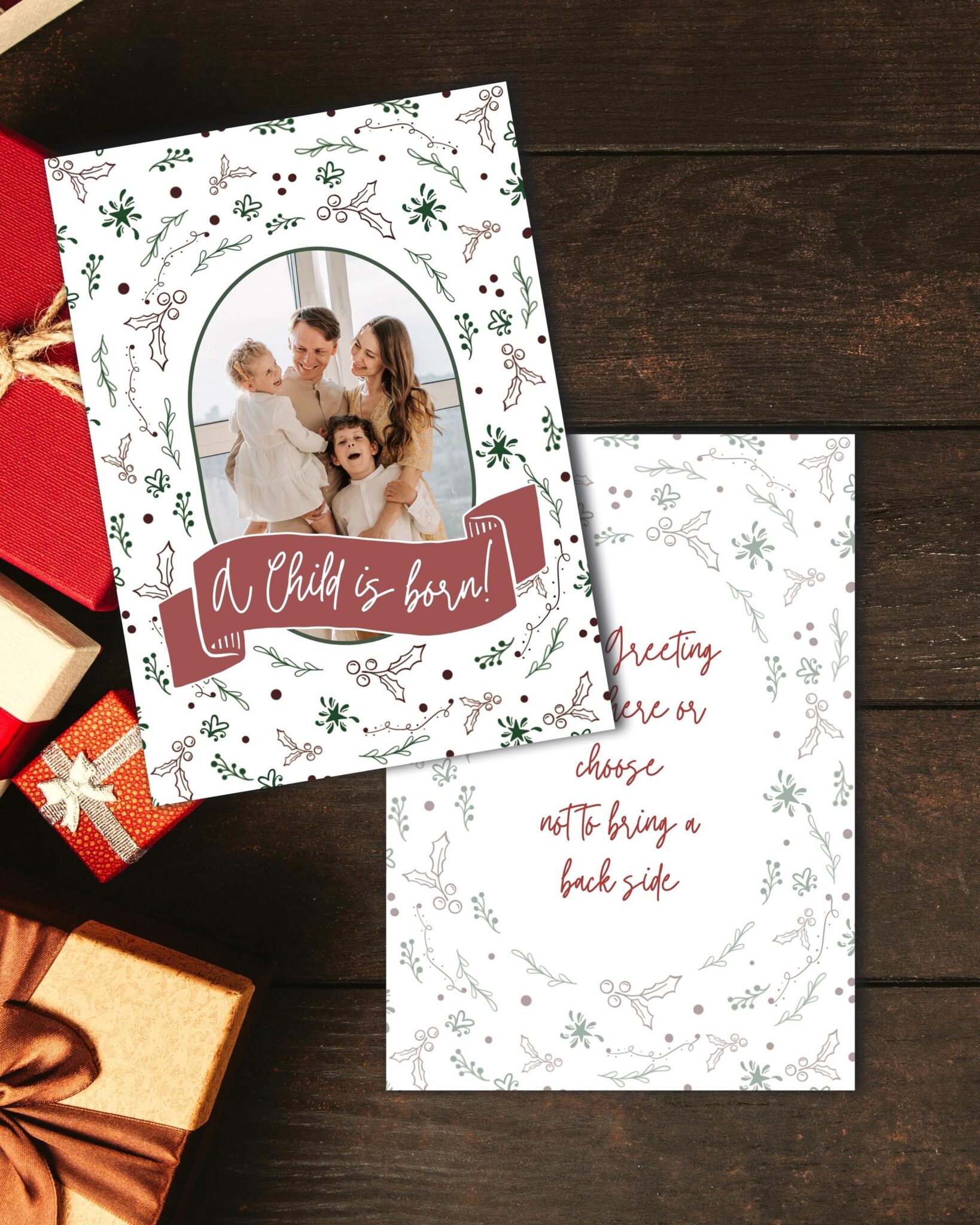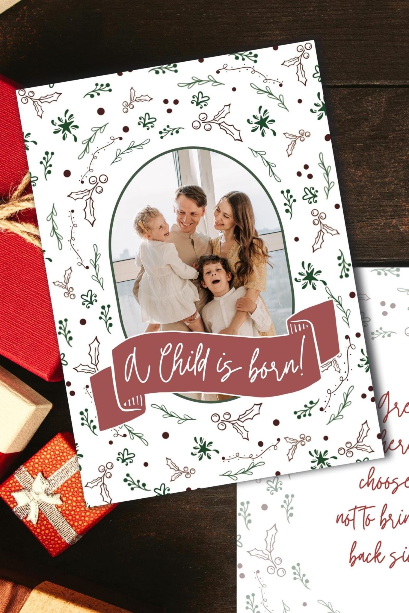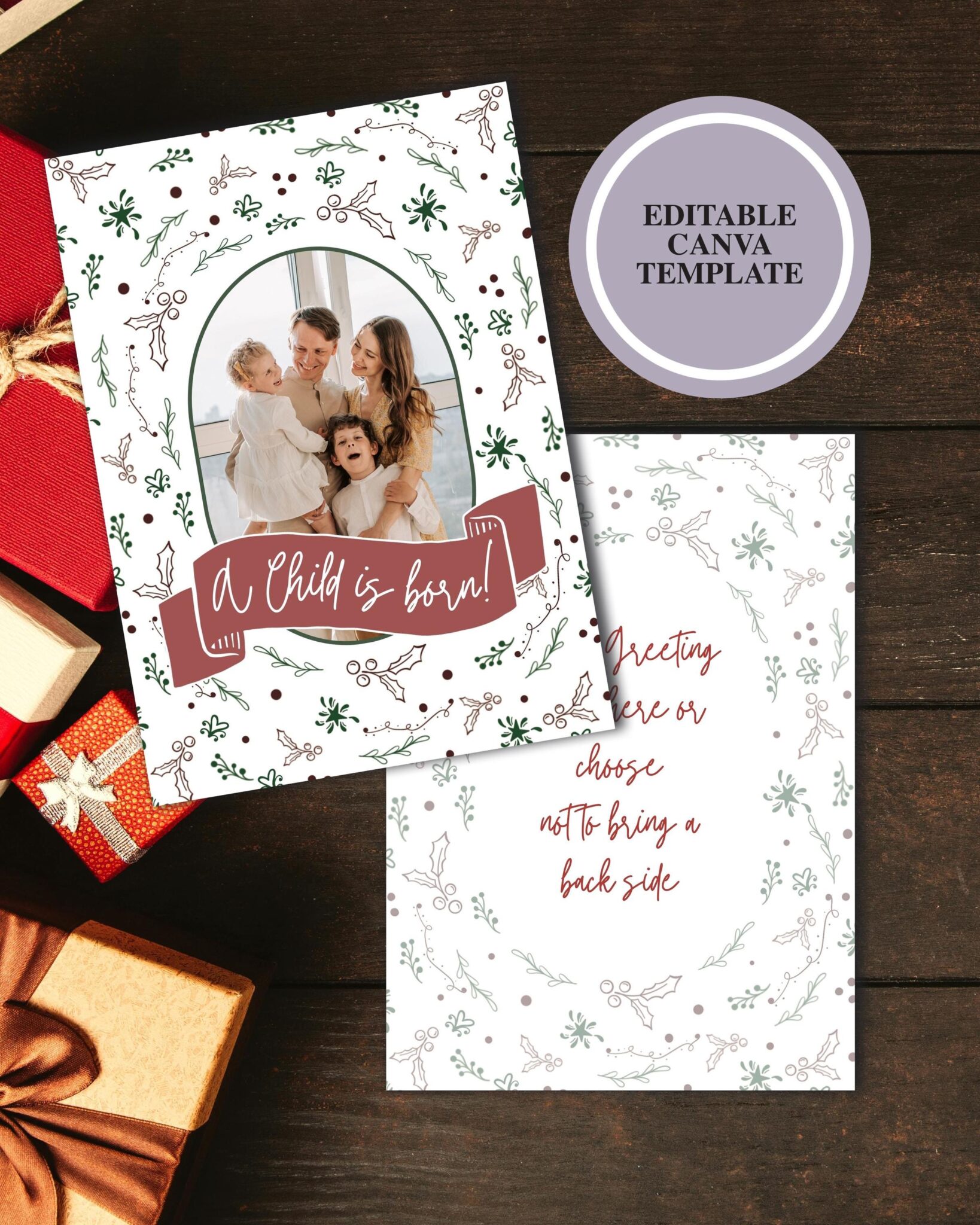 Religious Photo Christmas Card Template, A Child is Born, Christian Christmas Card Template