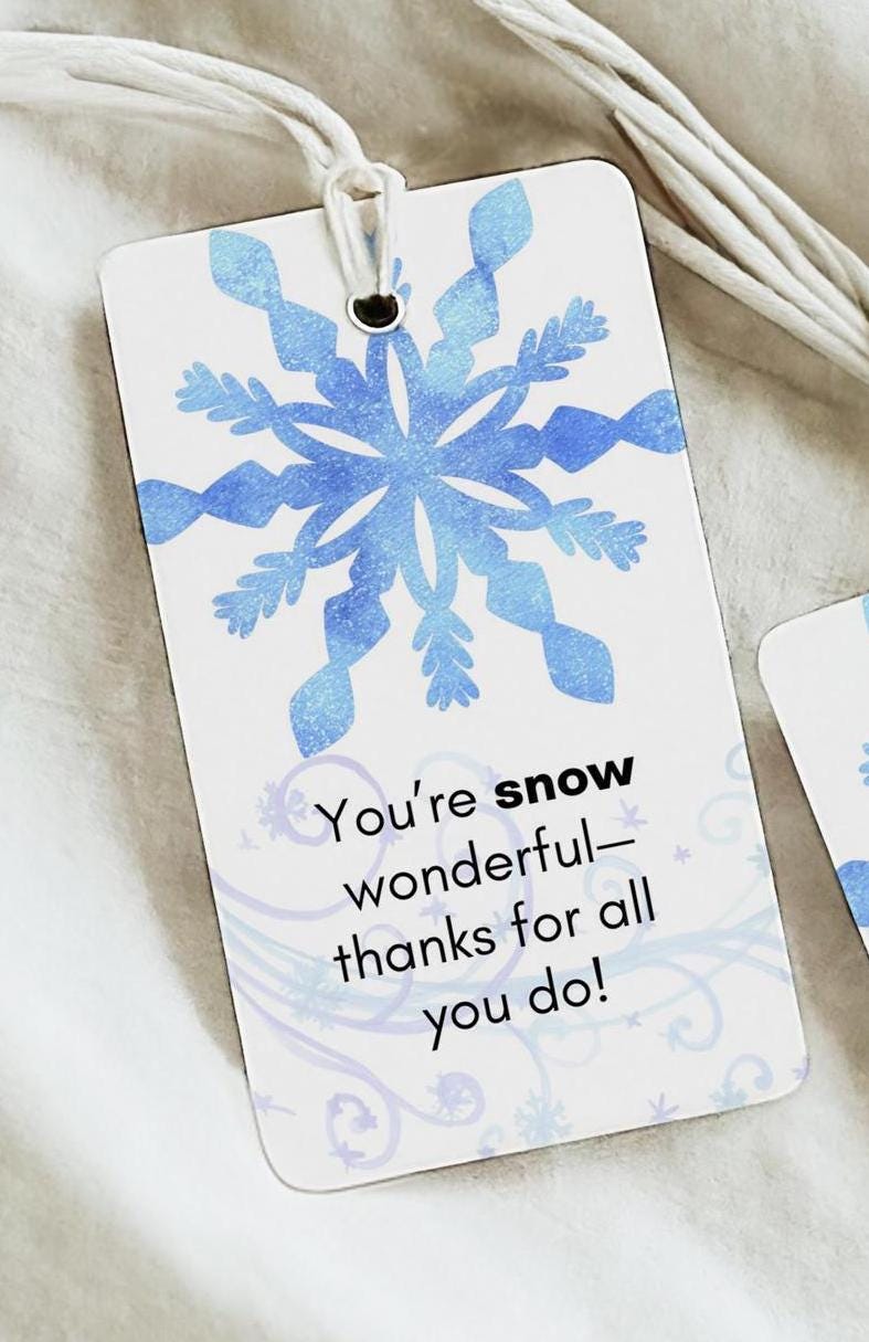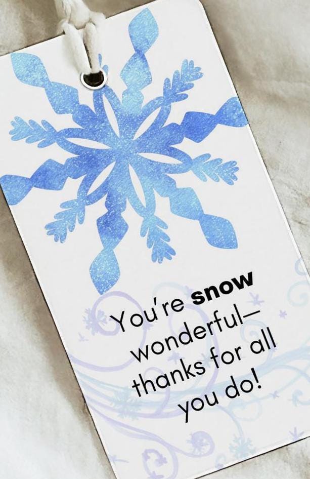 Celebrate your volunteers this Christmas season with these cheerful “You’re SNOW Wonderful” gift tags. Designed with a festive snowflake illustration and a warm winter message, these tags are perfect for attaching to treat bags, baked goods, cocoa gifts, volunteer appreciation bundles, or holiday giveaways.