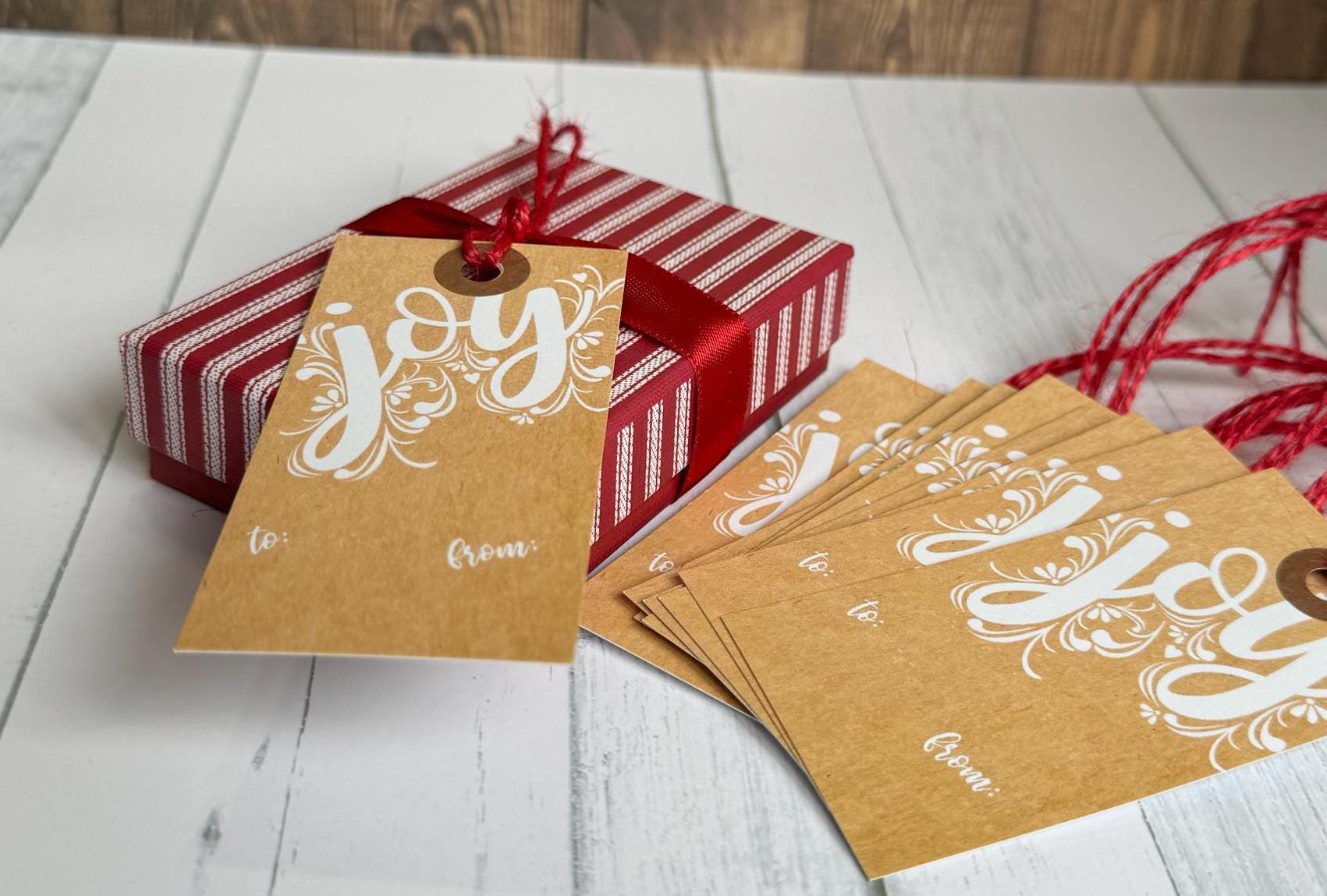 Add a simple, meaningful finishing touch to your gifts this season with these beautifully crafted Kraft Joy Christmas gift tags.