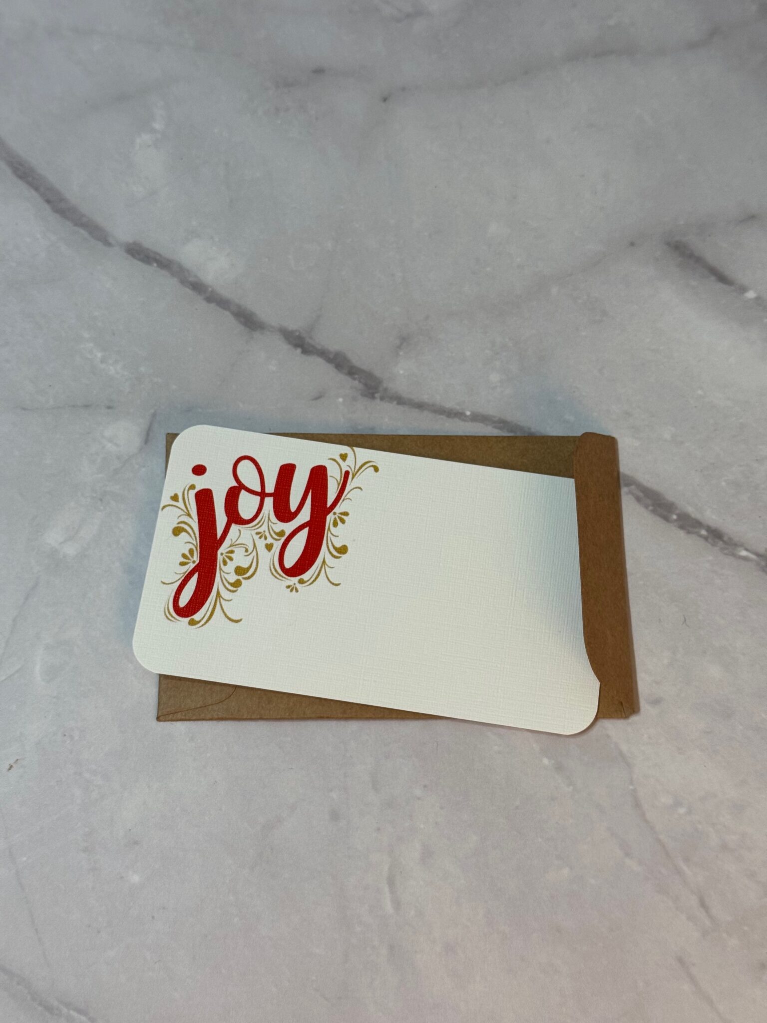 Celebrate the season with these charming Red and Gold "Joy" Mini Note Cards, featuring a festive hand-drawn design inspired by Nordic folk art. Perfect for spreading cheer, sharing gratitude, or adding a special touch to holiday gifts, these petite cards bring warmth and simplicity to every note.