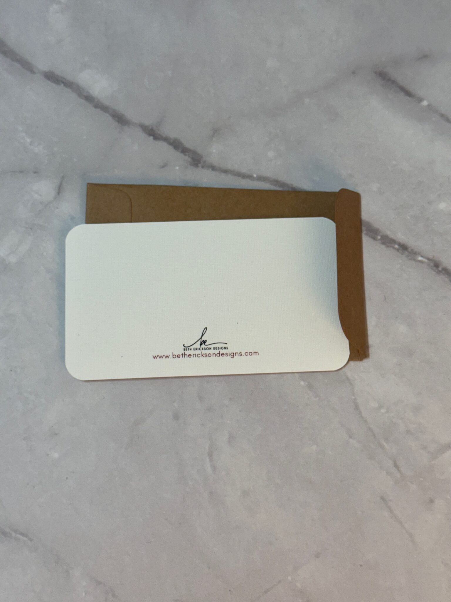 Each set includes 1 mini cards, beautifully printed on linen-textured white cardstock for a high-quality, tactile finish. The cards are blank inside—ready for your personalized holiday message—and come with coordinating kraft envelopes for a rustic, natural look.