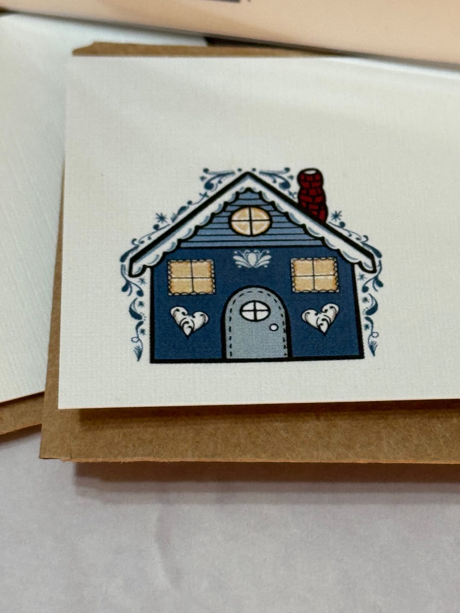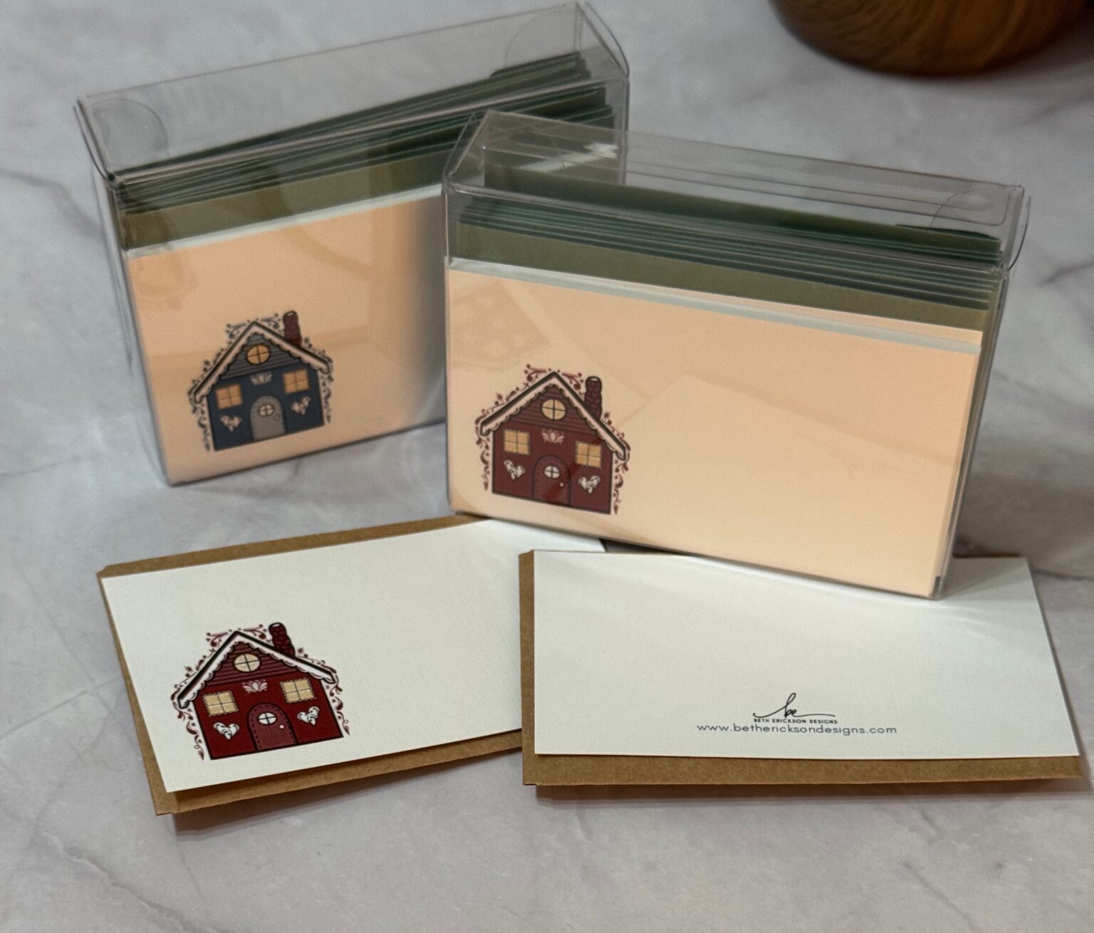 Each set includes 5 mini cards, beautifully printed on linen-textured white cardstock for a high-quality, tactile finish. The cards are blank inside—ready for your personalized holiday message—and come with coordinating kraft envelopes for a rustic, natural look.