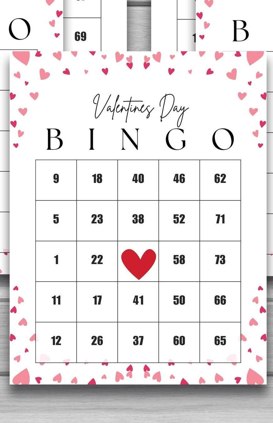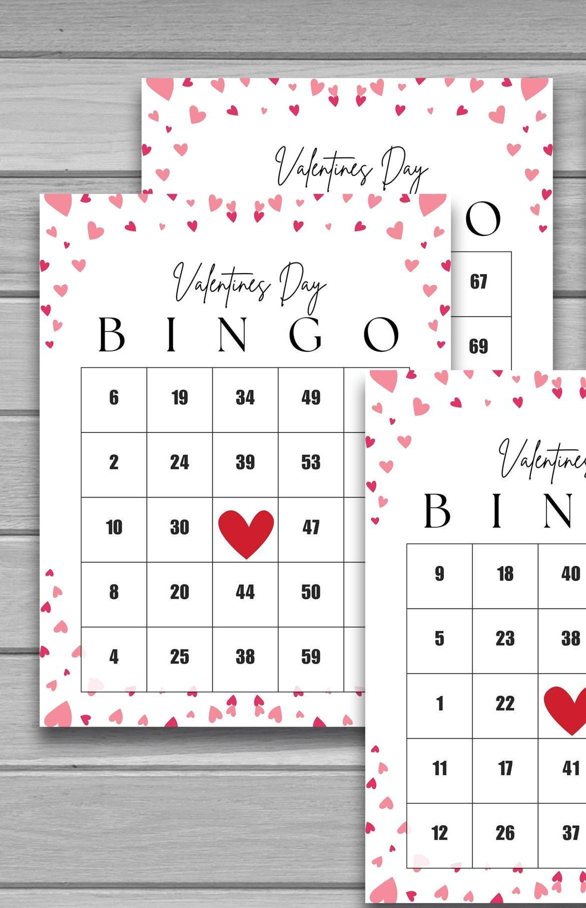 Valentine-themed calling sheet with numbers B1–O75